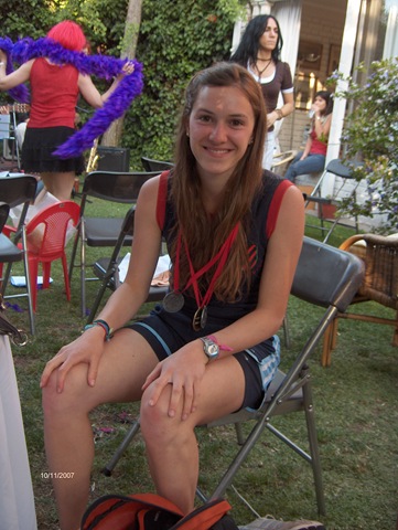 Mi Vero llegó atrasada porque compitió en su último campeonato escolar de su vida, ganando tres medallas (corrió 100 mts., 300 mts. y posta). Aquí la vemos con sus medallas.