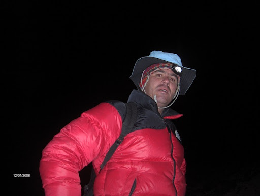 Sábado: Son las 3 am. Me despierto después de haber dormido profundamente por casi 9 hrs. Sorprendido noto que estoy con muchas fuerzas y sin ningún sintoma de apunamiento. Lamentablemente, me digo como para darme ánimo, en estas condiciones no puedo desperdiciar la oportunidad de intentar llegar a la cumbre. Está oscuro, enciendo mi linterna que me la adhiero a la cabeza, y en el interior de la carpa me comienzo a vestir- Me pongo calzoncillos largos, calcetines de lana largos, jeans, camiseta, polera y polar. Encima de eso me colocaría una parca y en caso necesario un pantalón de esquí. Luego preparé la mochila que llevaría para arriba. Dos botellas con líquido de un litro cada una. Mucho chocolate, pasas y mani. Un sandwich, huevo duro. Había que llevar muchos alimentos que nos dieran suficiente energía durante el camino.