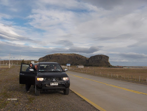 El viaje dura unas tres horas a través de algo más de 240 kms. El camino muy lindo, primero pampa, muy solitario y luego poco a poco se va transformando en algo más boscoso y también con más animales, sin dejar de ser un paraje medio solitario. Los hicimos en cuatro camionetas en las que en la mía viajaban además de los Bazán Heredia, la Angélica Domínguez con su pololo Andrés.